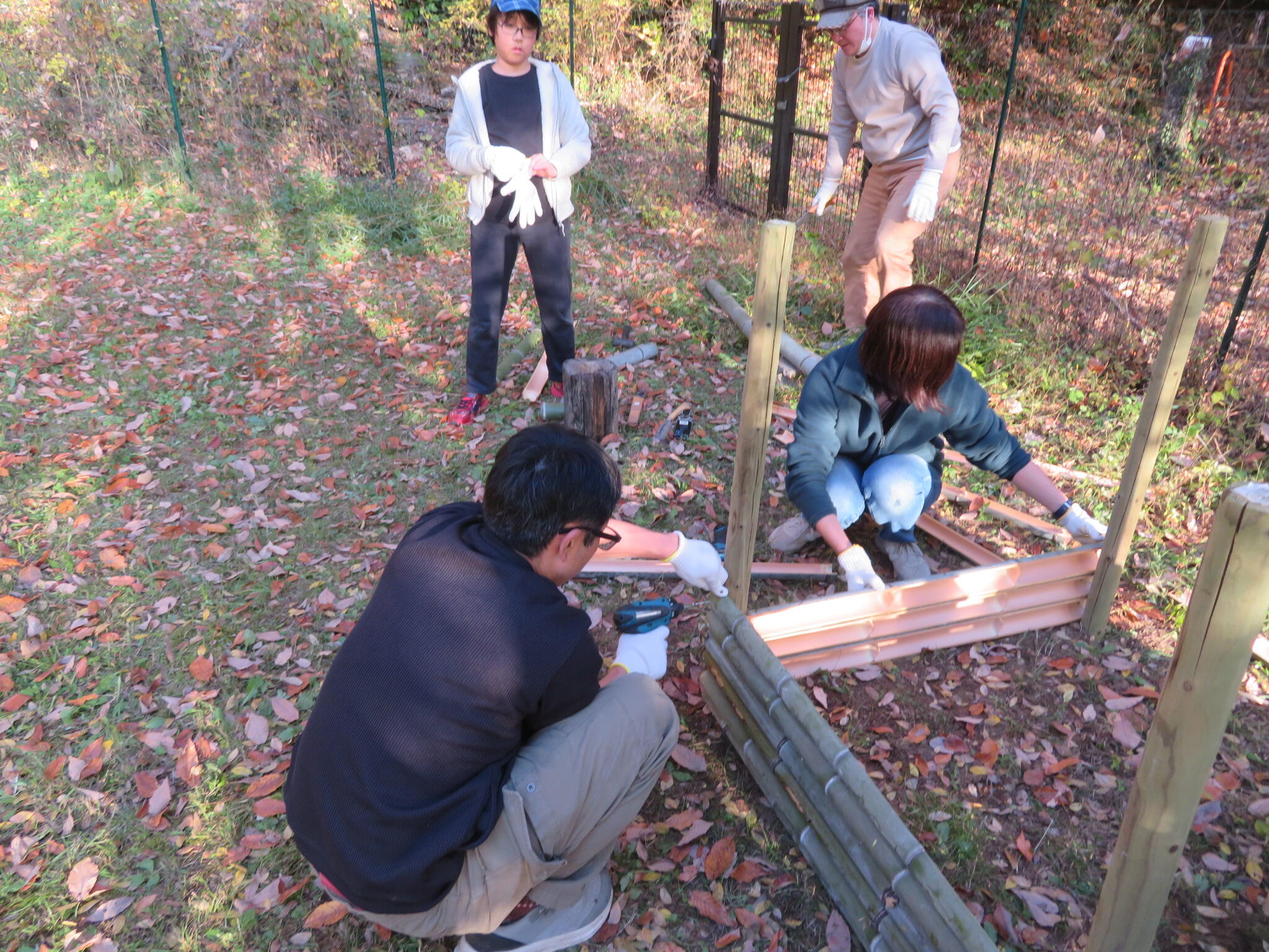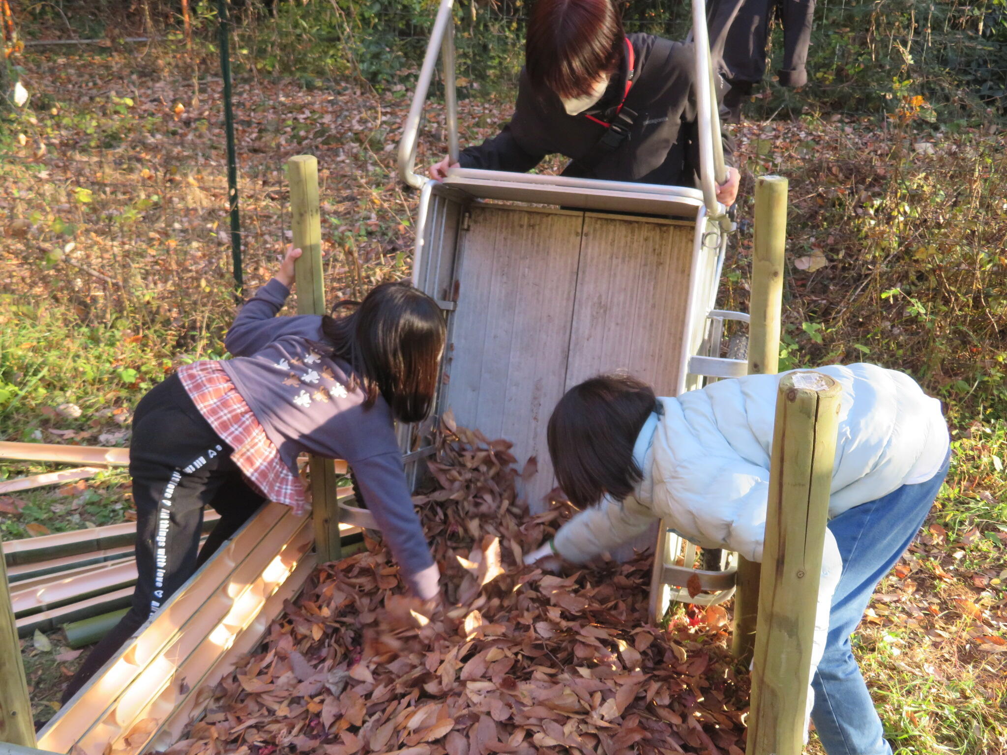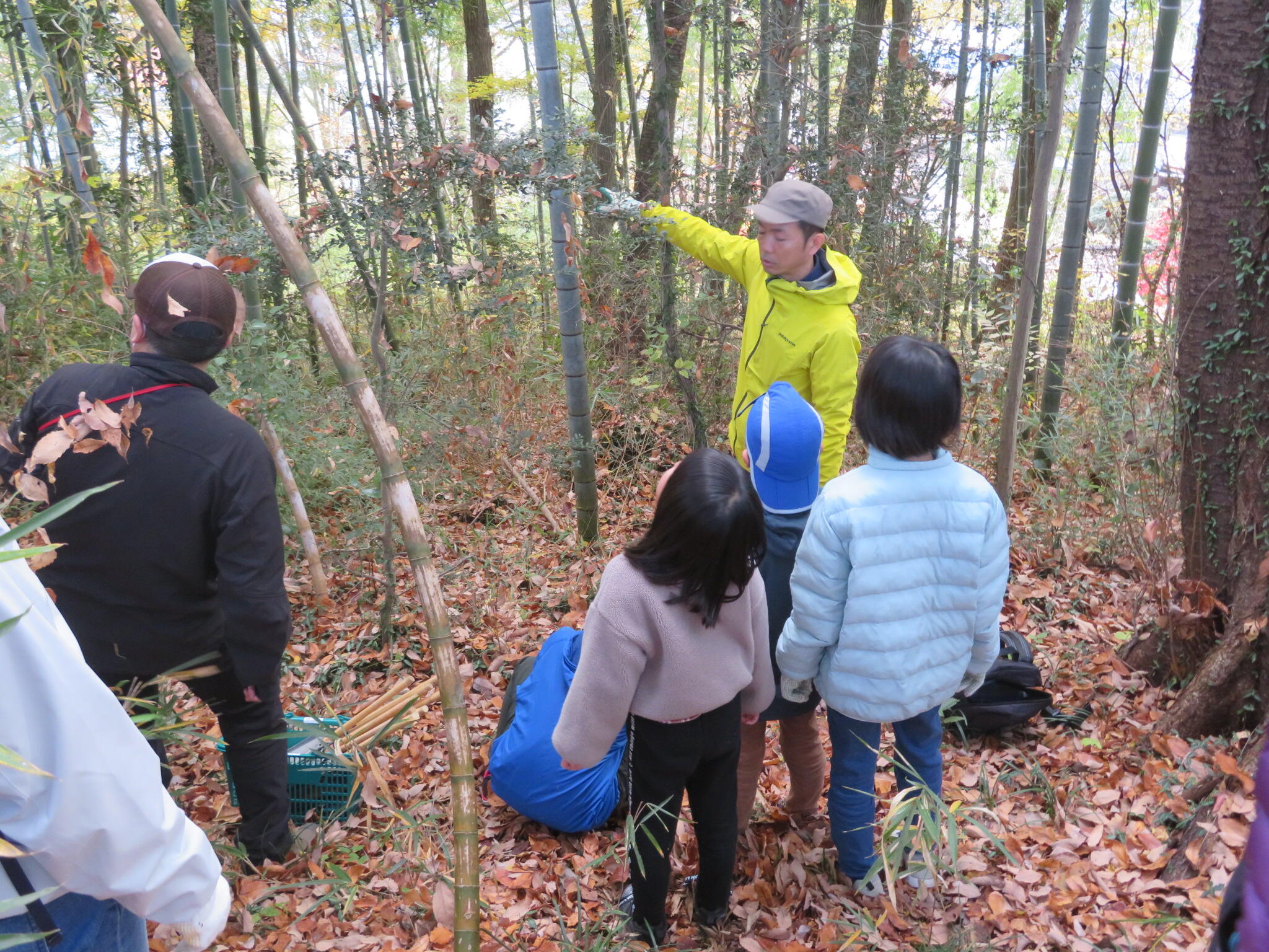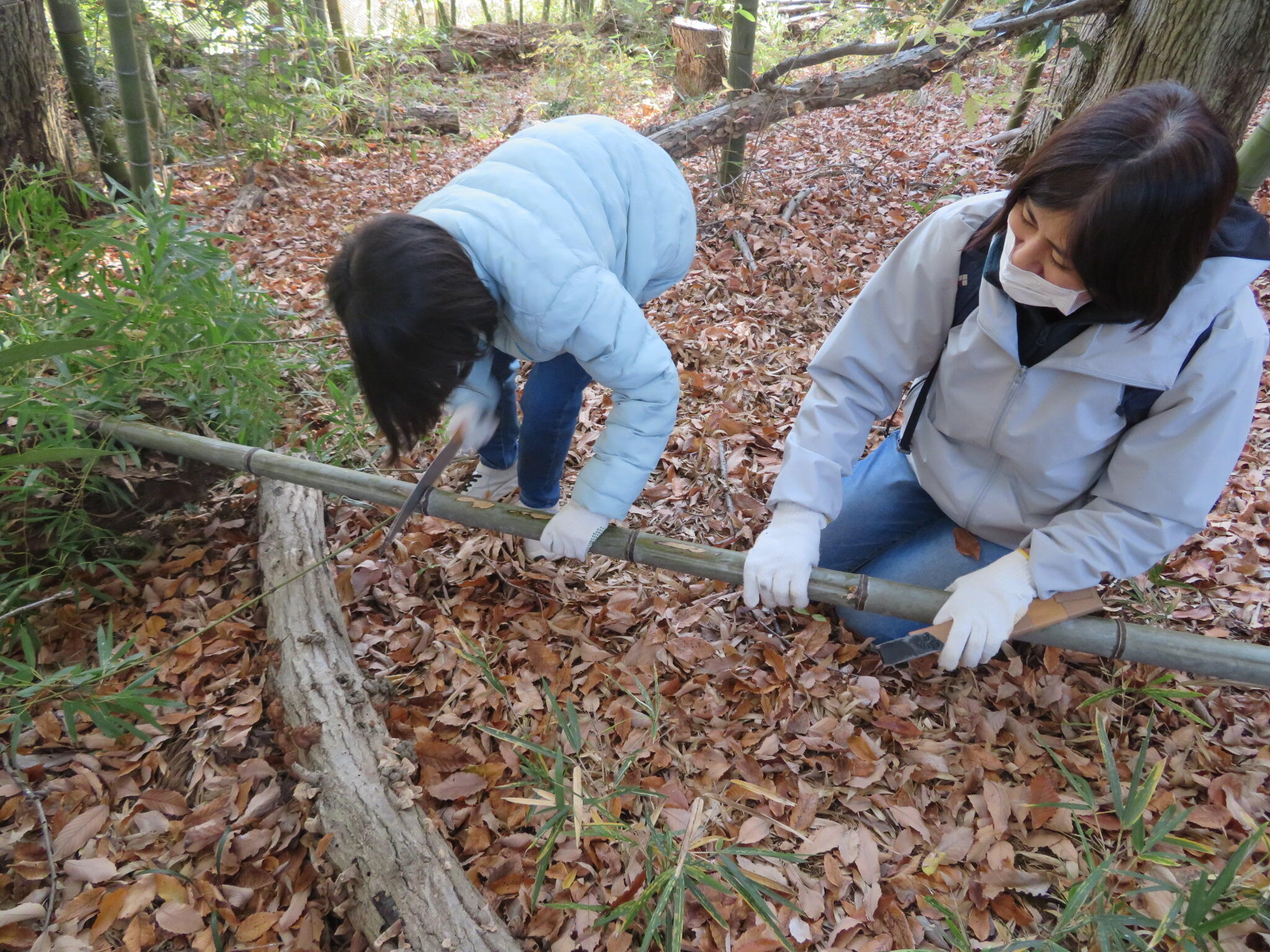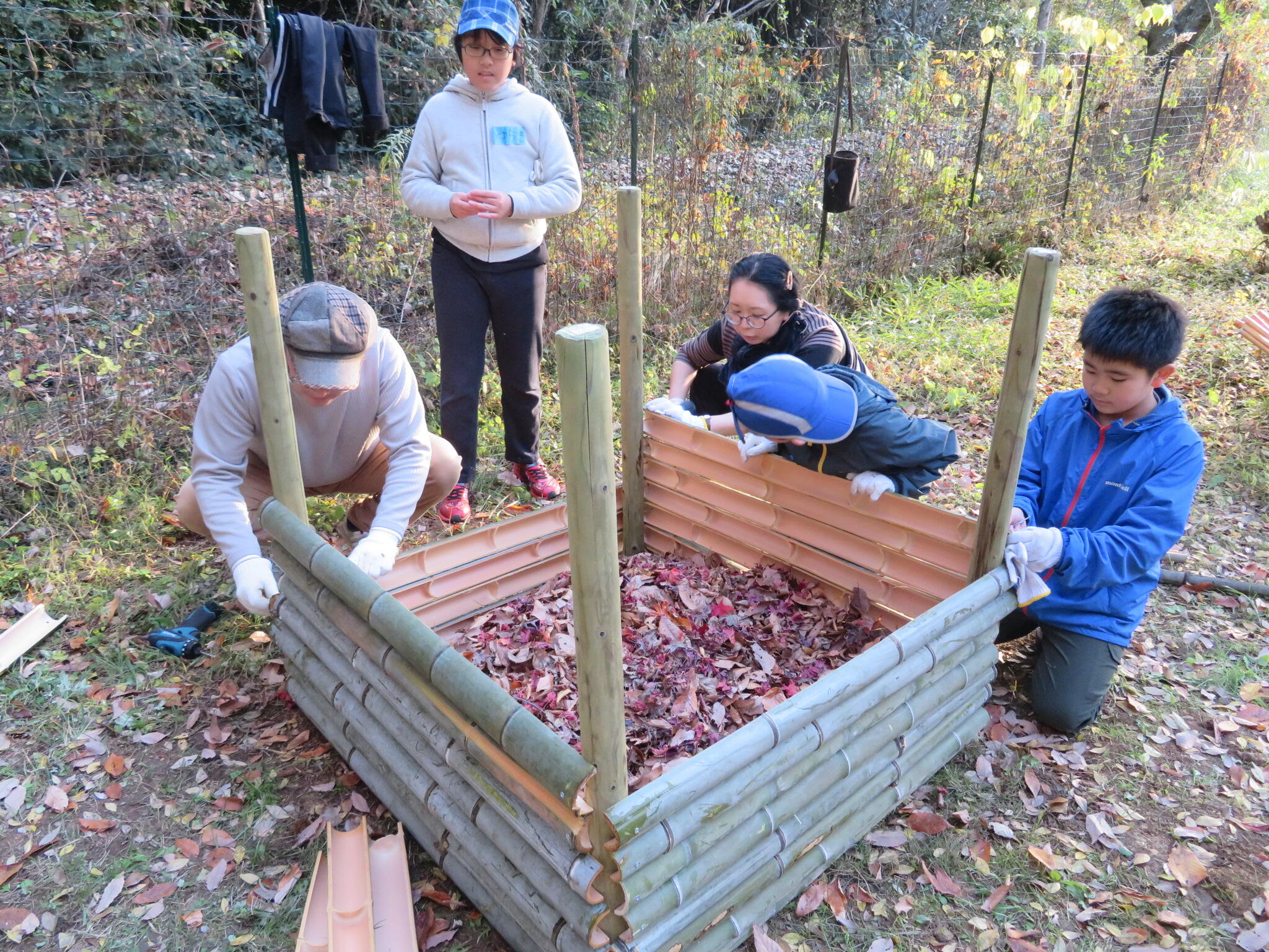 「BEE HOUSE」のその後の様子や、センサーカメラを仕掛けて森の中にどんな生き物がいるのかも観察します。そして、冬に向けて生き物の住処であるエコスタック作りを行います。