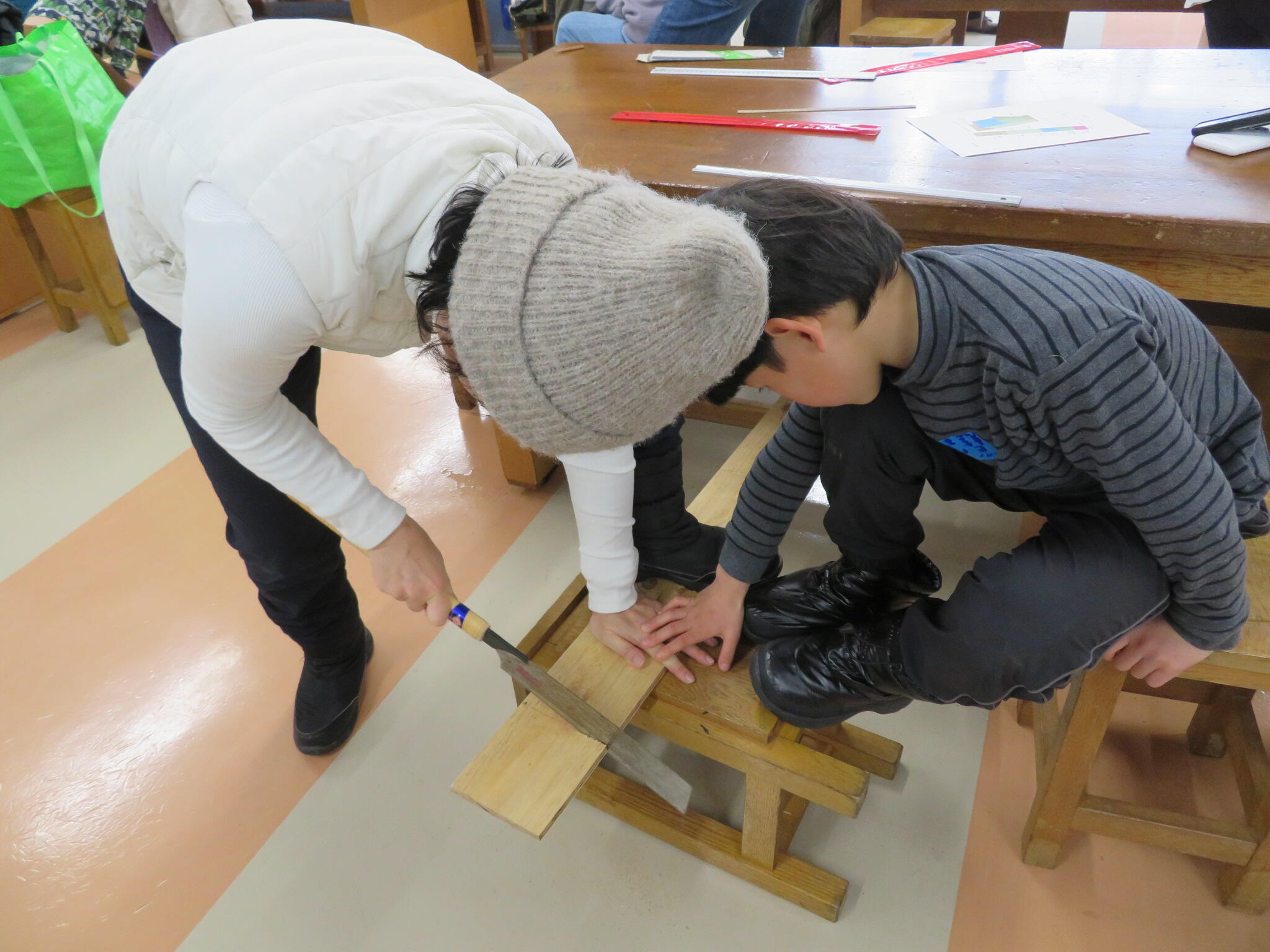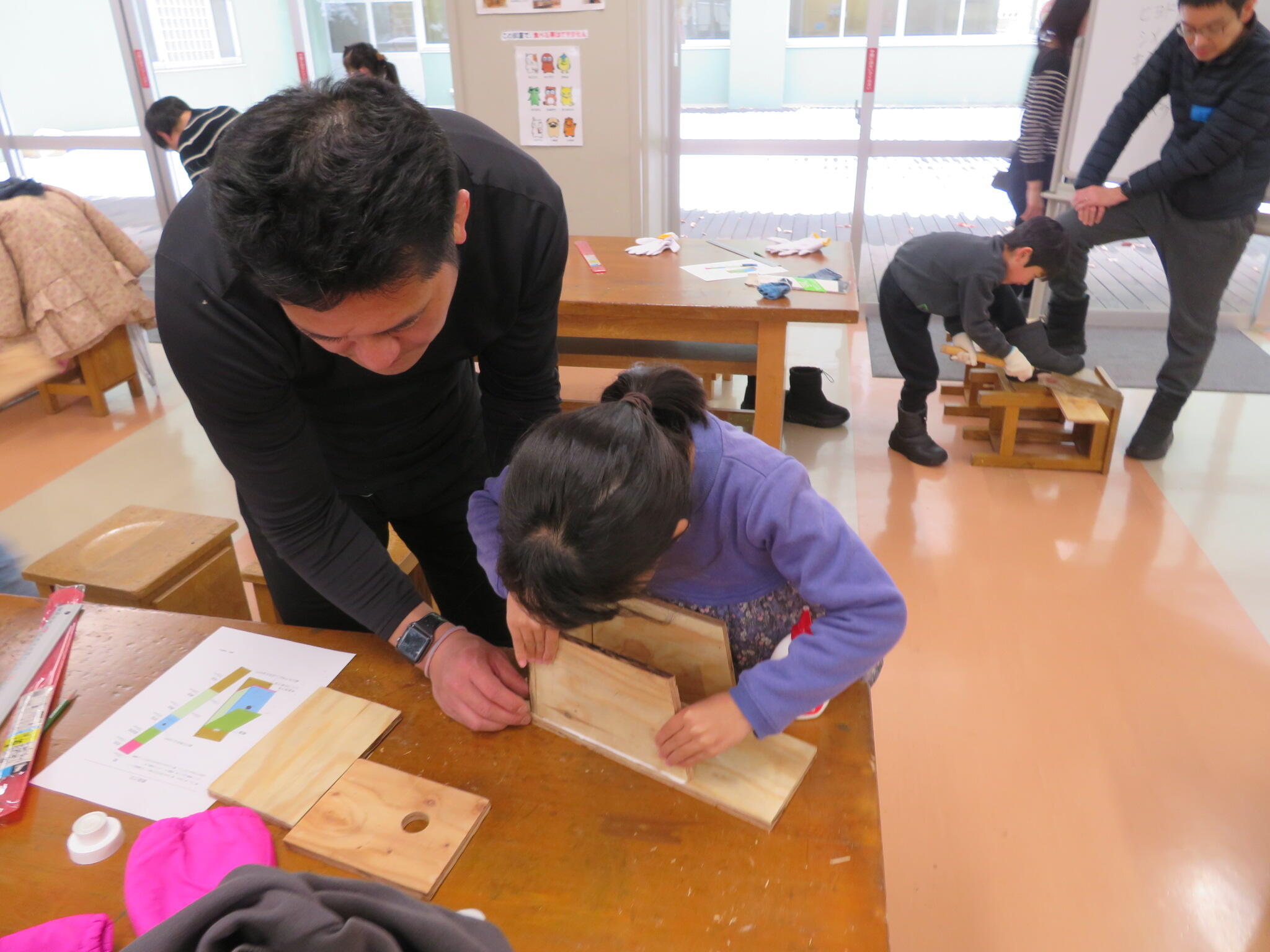 昼食の後は親子で協力して設計図を見ながら「バードハウス」の作成を行いました。