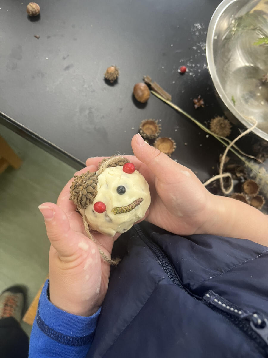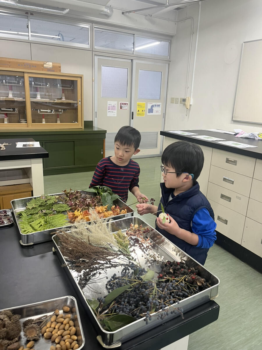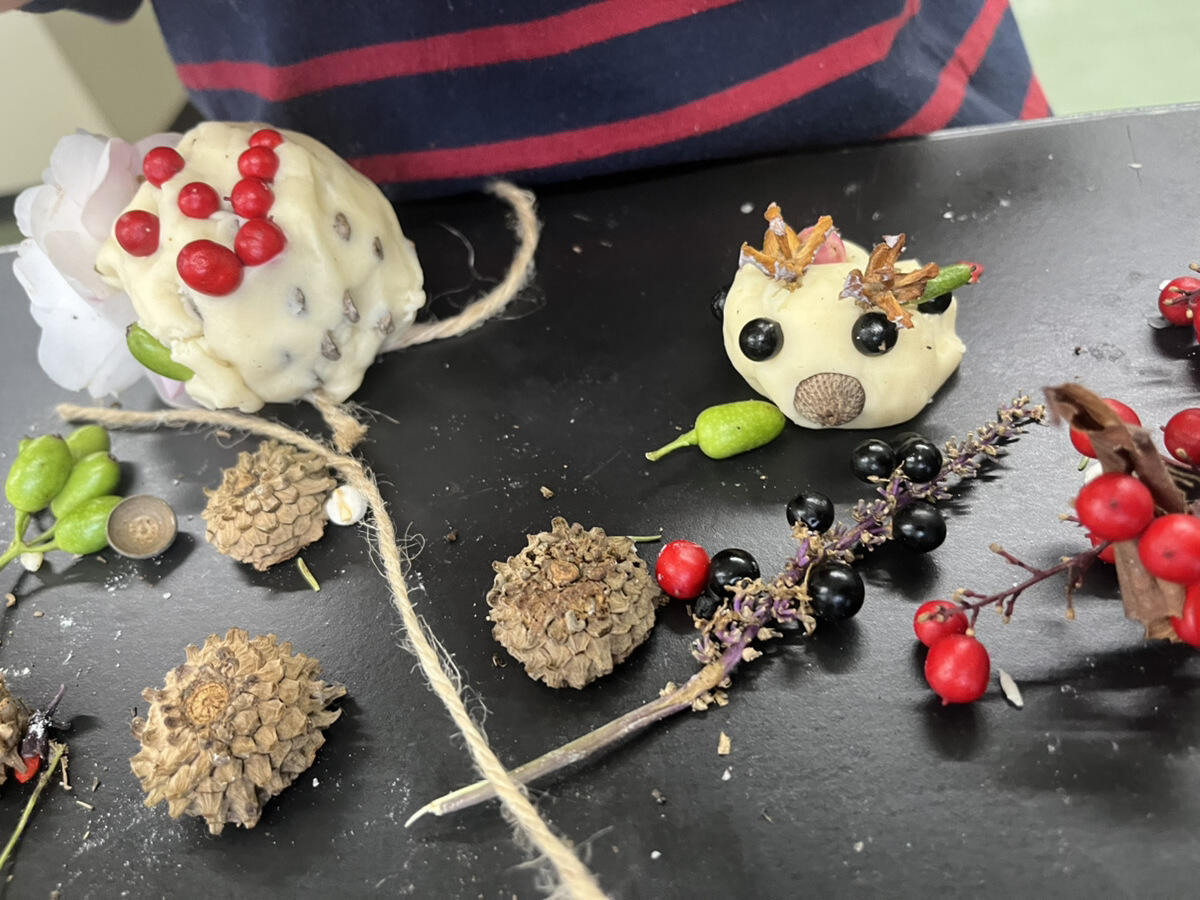 その後、室外に行って、探検しながら自然物をたくさん集めた。