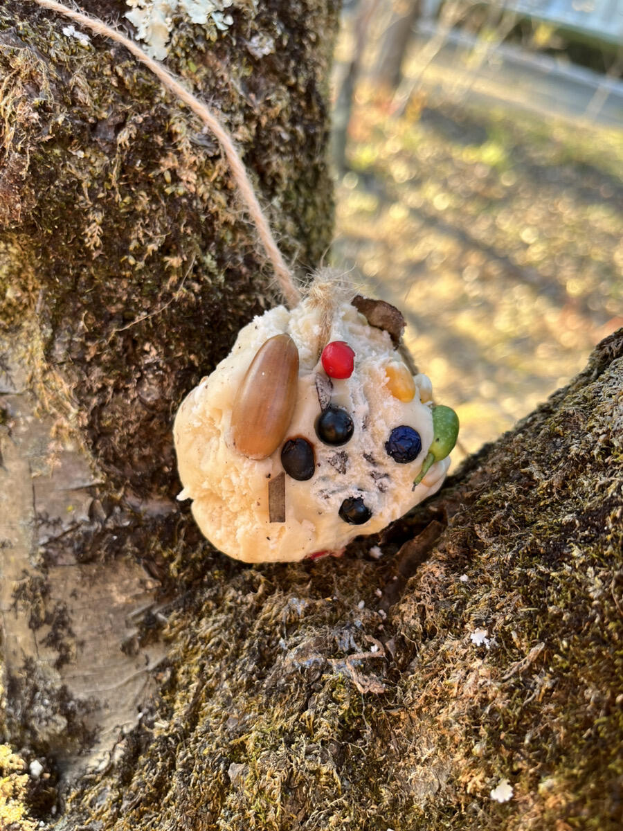 餌の少ない冬の間に、小鳥たちが冬を越しやすい環境を作るため、栄養たっぷりの「バードケーキ」を作るプログラムです。