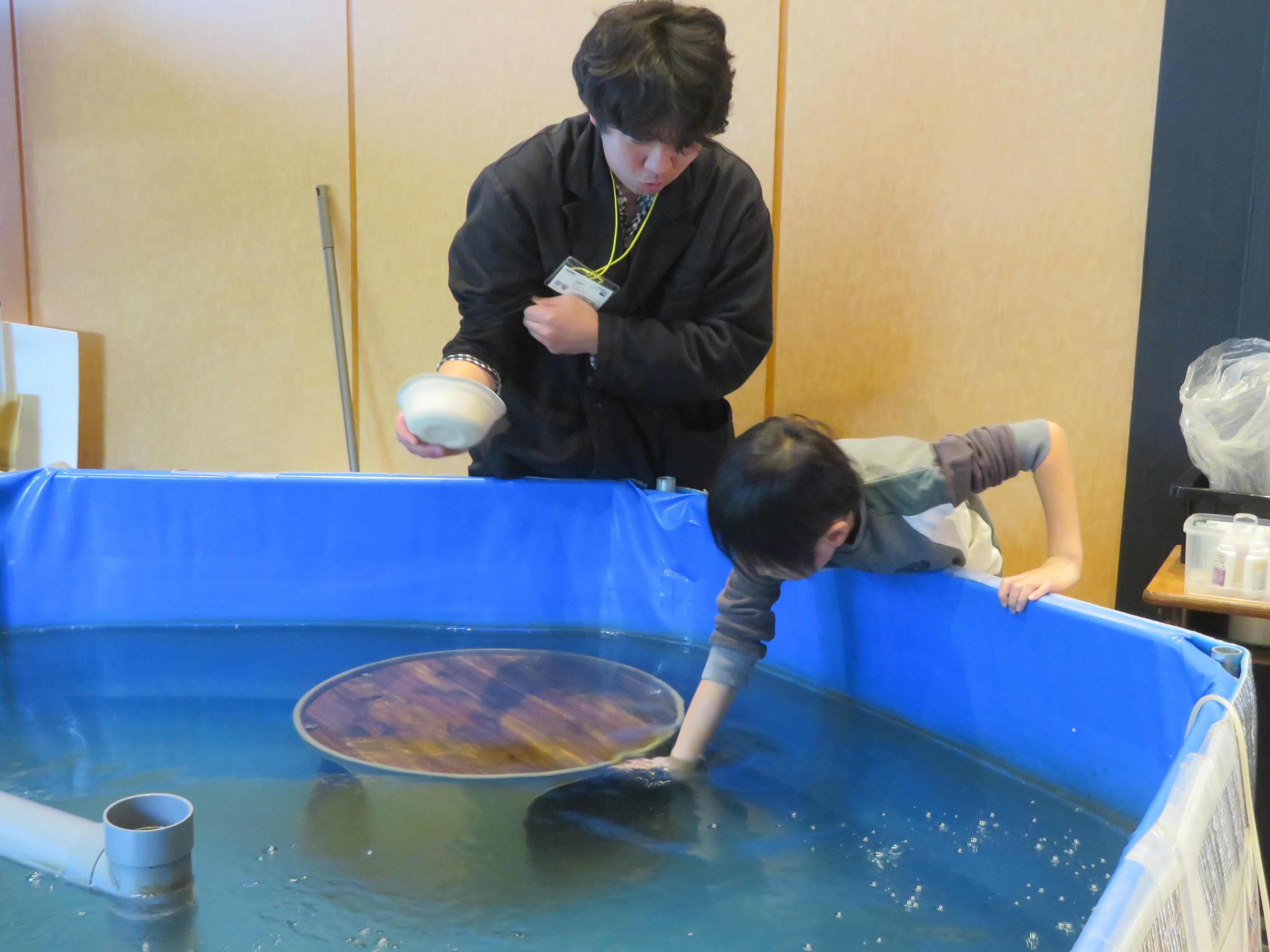 水槽の中にいるお魚さんのウンチを微生物が分解して、それが植物の栄養になって、植物がきれいにした水がまた水槽に戻って、くるくると循環する仕組みなんだって。